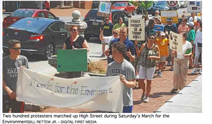 This photo by Bill Rettew is reproduced with permission from “Hundreds rally in West Chester to support the environment,” Daily Local News, 4/29/17.