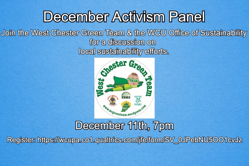 Local sustainability activism panel: Fourth Annual Environmental Film and Forum Series at WCU sponsored by the Office of Sustainability at West Chester University and the West Chester Green Team, in memory of Graham Hudgings.