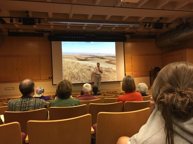 From the devastation wrought by the extraction of saleable product from the Alberta Tar Sands, the talk ranged across many themes and adventures, from winter weather and unwanted encounters with bovines to the beauty of the landscapes and the generosity of farmers faced with a tired and hungry hiker asking if they couuld spare a glass of water.
